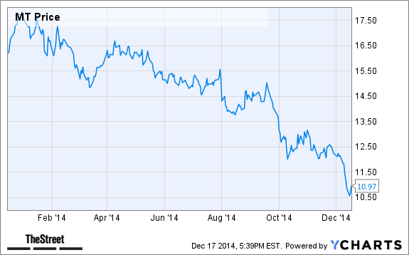 For Mohr's third pick: steel titan ArcelorMittal (MT) , which is down nearly 39% in 2014. The company is the world's largest steel producer, with almost 10% of the global market share.